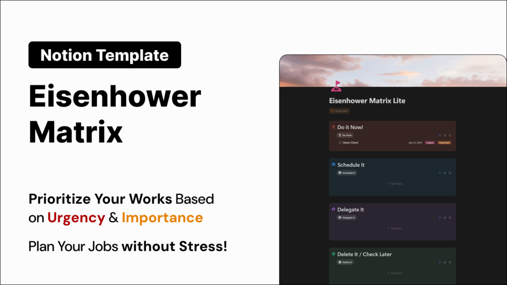 The Eisenhower Matrix Lite Notion template helps you cut through the noise and focus on what truly matters.